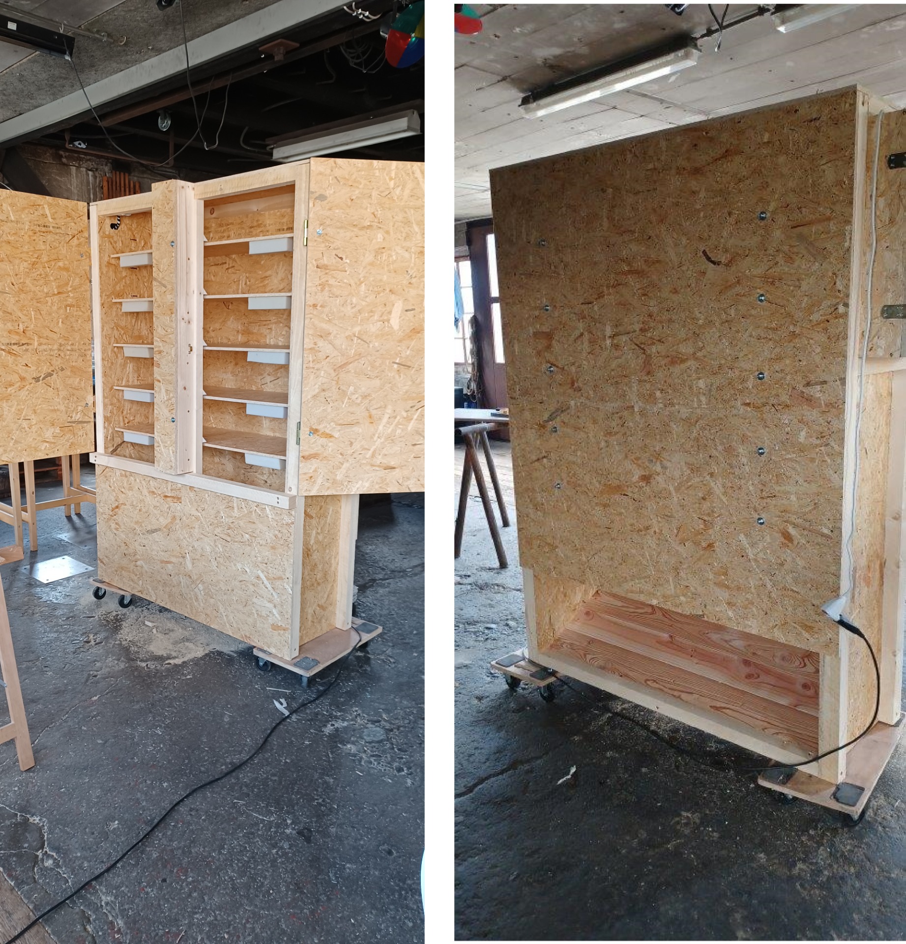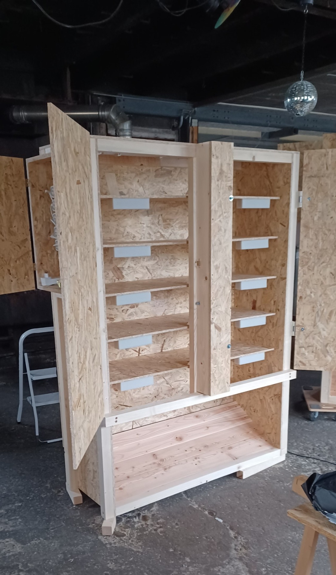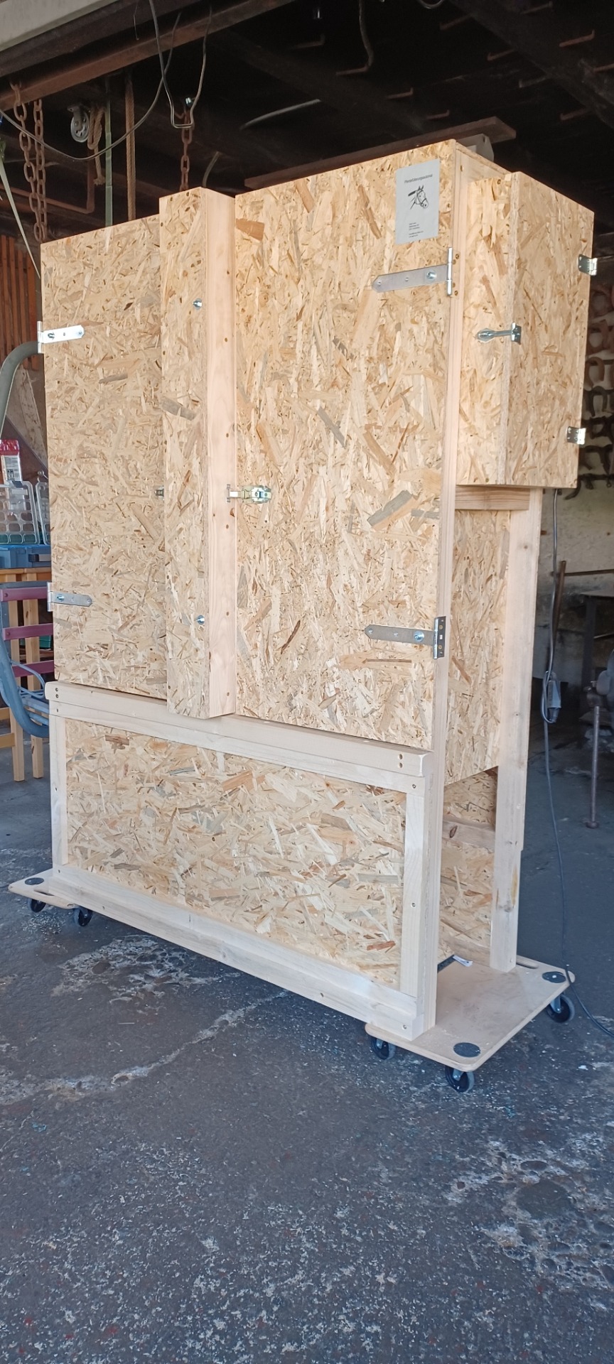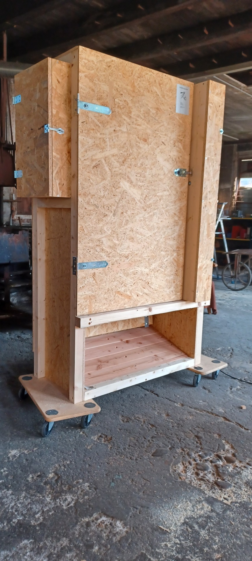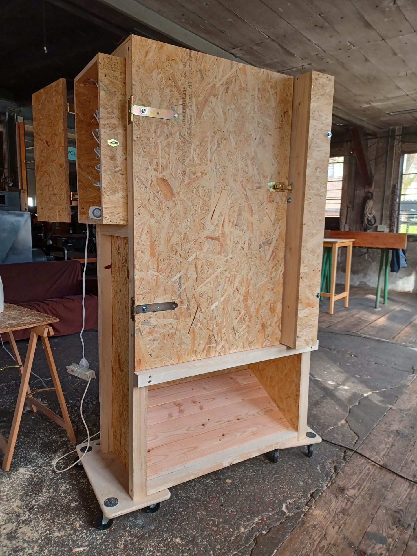 - Robuste Holzkonstruktion, verschraubt und verklebt